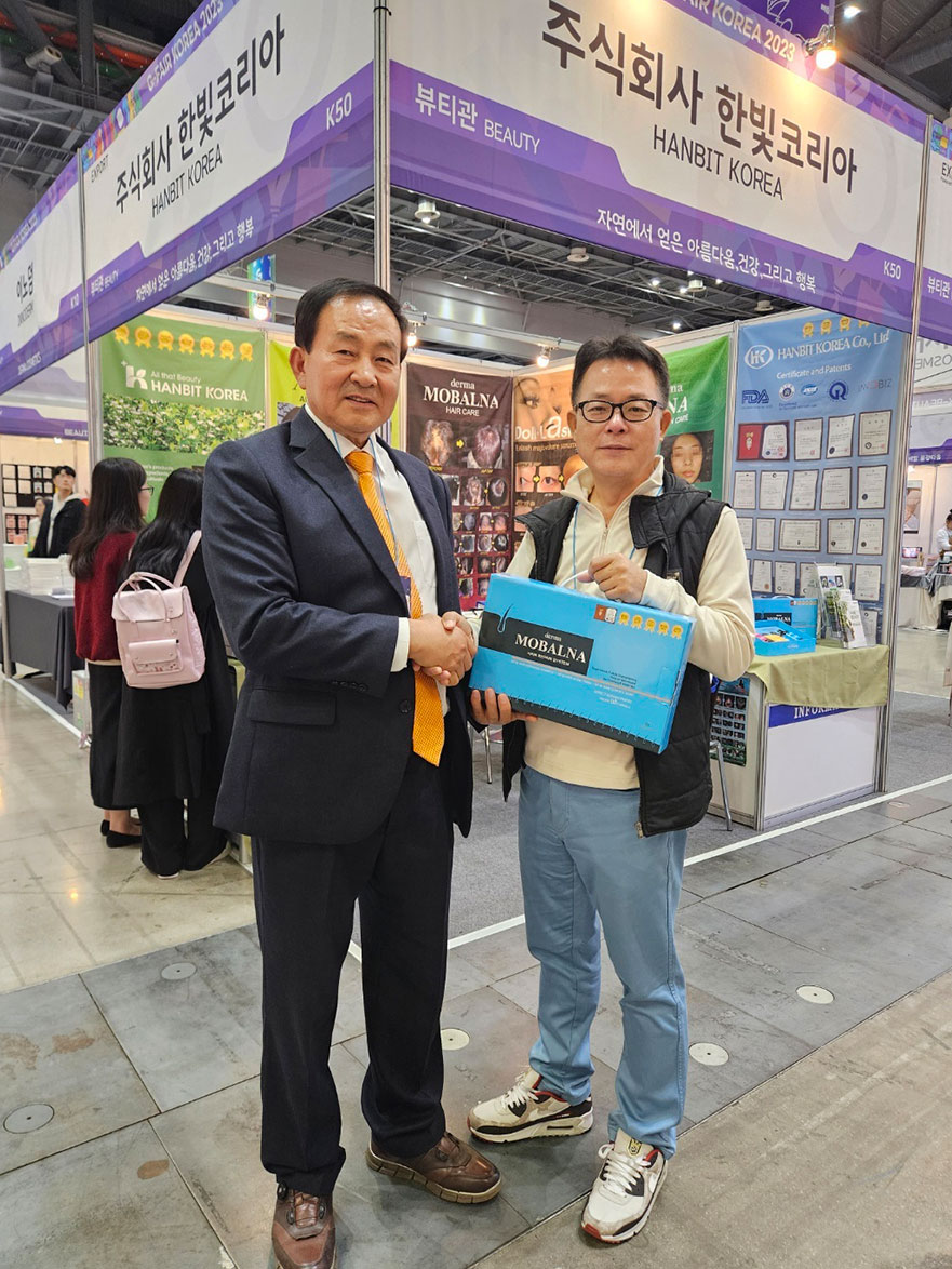 한빛코리아가 개발한 제품 중 가장 핫하다고 생각되는 제품은 바로 이 제품! 사진 속에 등장하는 '모발나'라는 제품이에요.